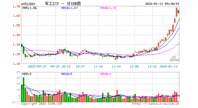 军工ETF(512660)业绩比较基准为中证军工指数收益率,管理人为国泰基金管理有限公司,基金经理为艾小军,成立(2016-07-26)以来回报为64.99%,近一个月回报为33.69%。