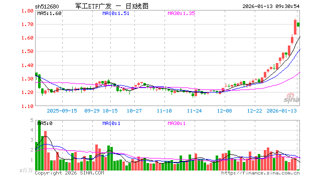 军工ETF广发(512680)业绩比较基准为中证军工指数收益率,管理人为广发基金管理有限公司,基金经理为霍华明,成立(2016-08-30)以来回报为69.03%,近一个月回报为33.80%。