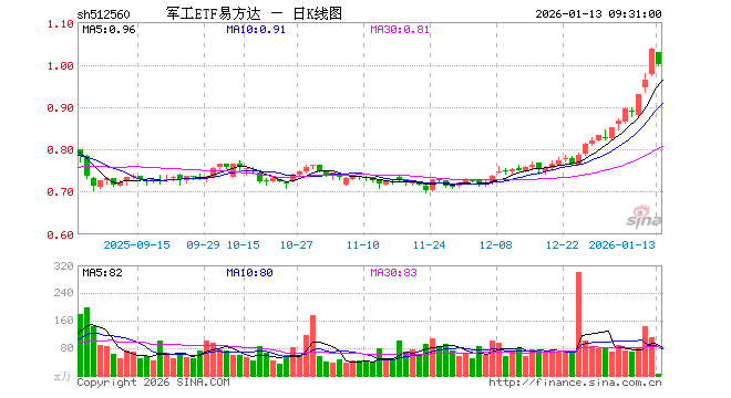 1月13日,军工ETF易方达(512560)开盘跌0.77%,报1.028元。军工ETF易方达(512560)重仓股方面,中国船舶开盘跌0.11%,中航沈飞跌0.75%,光启技术跌0.02%,航发动力跌0.98%,中航光电涨3.35%,中航西飞跌1.24%,中国长城涨2.23%,睿创微纳跌1.72%,菲利华跌1.04%,航天电子涨2.12%。