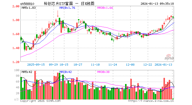 科创芯片ETF富国(588810)业绩比较基准为上证科创板芯片指数收益率,管理人为富国基金管理有限公司,基金经理为张圣贤,成立(2024-12-30)以来回报为85.55%,近一个月回报为13.58%。