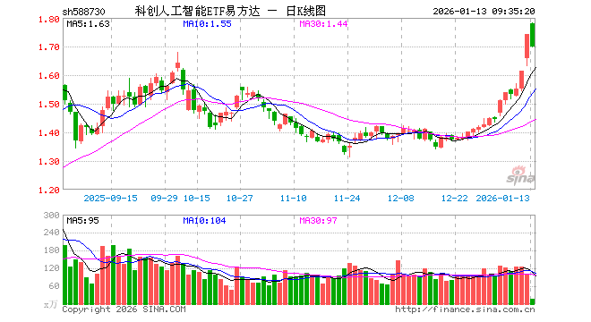 科创人工智能ETF易方达(588730)业绩比较基准为上证科创板人工智能指数收益率,管理人为易方达基金管理有限公司,基金经理为刘文魁,成立(2025-01-16)以来回报为71.73%,近一个月回报为21.60%。
