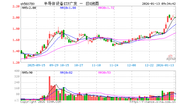 1月13日,半导体设备ETF广发(560780)开盘跌0.65%,报2.000元。半导体设备ETF广发(560780)重仓股方面,中微公司开盘跌1.20%,北方华创跌0.37%,长川科技跌0.99%,沪硅产业涨1.06%,华海清科跌0.70%,拓荆科技跌0.84%,安集科技跌1.18%,南大光电跌0.61%,芯源微涨0.95%,中科飞测跌1.08%。