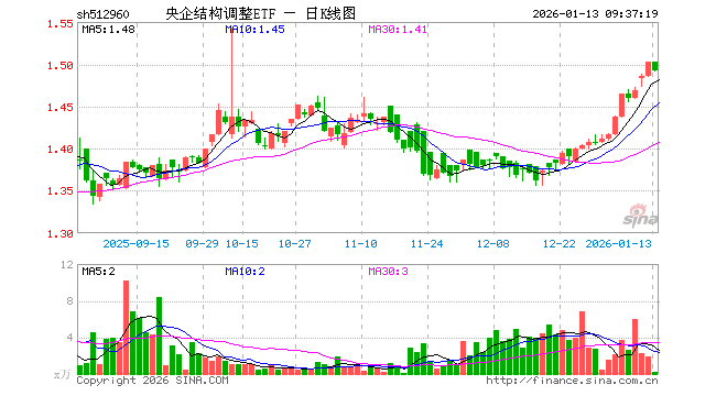 央企结构调整ETF(512960)业绩比较基准为中证央企结构调整指数收益率,管理人为博时基金管理有限公司,基金经理为赵云阳,成立(2018-10-19)以来回报为58.42%,近一个月回报为8.82%。