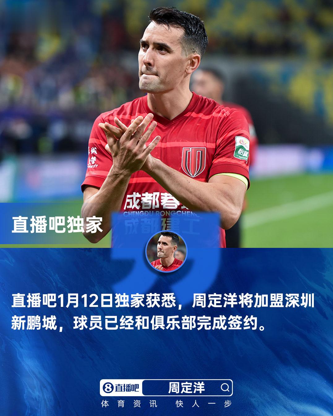 直播吧1月13日讯据直播吧昨日报道,周定洋将加盟深圳新鹏城。媒体人丰臻社媒撰文,认为本赛季深圳外援和港澳台球员的班底很硬,新赛季球队比赛场面将有所改观。