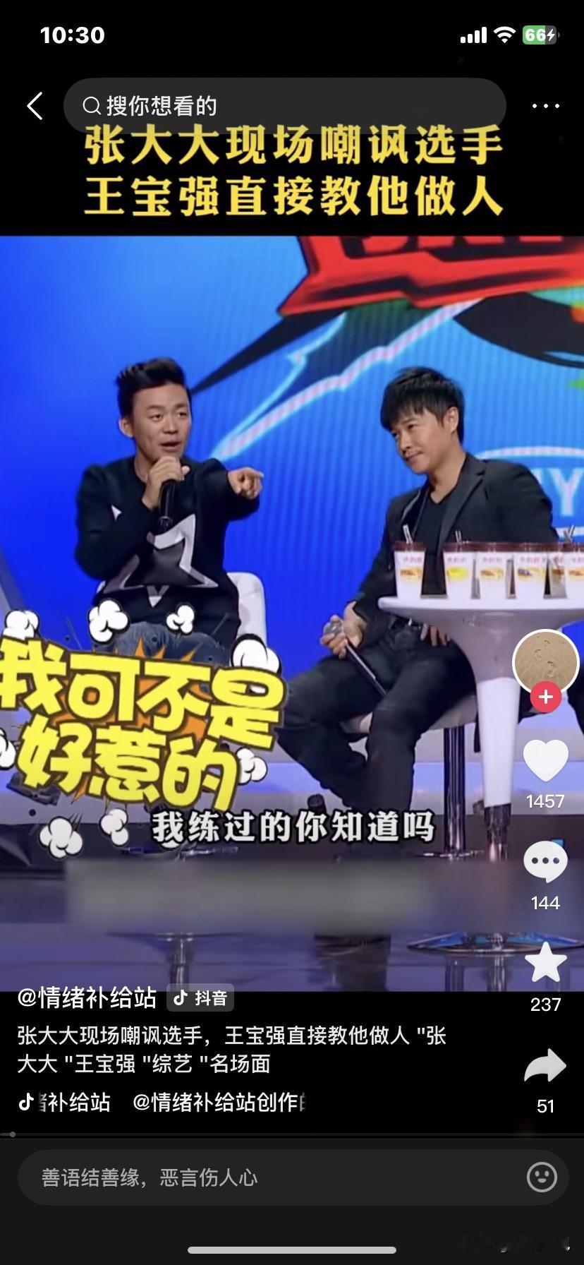 2015年,张大大指着王宝强,恶狠狠地说:“王宝强信不信我弄死你?” 王宝强霸气回击:“我练过的你知道吗?” 事情发生在《偶滴歌神啊》的录制现场。当时,王宝强和陈思诚前来宣传电影《唐人街探案》,节目中有个猜隐藏歌手身份的游戏环节。 王宝强认为游戏规则存在问题,歌手身份隐藏得过于浅显,一眼便能猜出。他当场指出,这样的设定是在侮辱观众的智商。 这话可把张大大惹恼了,他直接质问王宝强:“你是在教我做节目吗?”节目气氛瞬间变得紧张起来。 陈思诚看不惯张大大对王宝强的态度,接话怼道:“就是来教你做人的。”张大大没敢与陈思诚针锋相对,便将矛头转向了王宝强。他指着王宝强,放出狠话,声称信不信自己能把王宝强怎么样,让王宝强老实点。