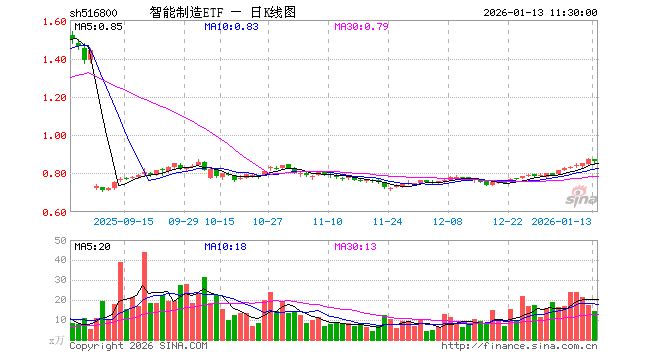 智能制造ETF(516800)业绩比较基准为中证智能制造主题指数收益率,管理人为华宝基金管理有限公司,基金经理为张放,成立(2021-01-29)以来回报为74.77%,近一个月回报为12.86%。