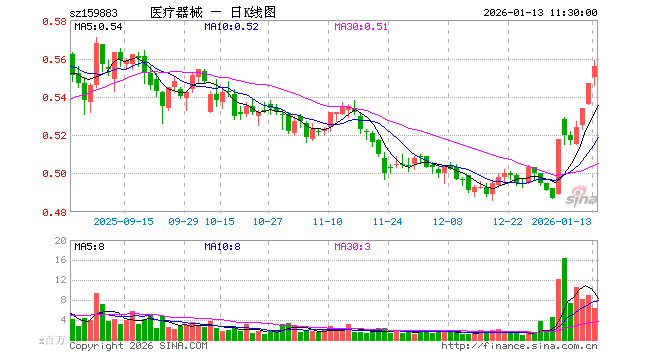 1月13日,截止午间收盘,医疗器械ETF(159883)涨1.65%,报0.556元,成交额3.52亿元。医疗器械ETF(159883)重仓股方面,迈瑞医疗截止午盘涨0.81%,联影医疗涨3.04%,爱美客涨0.89%,新产业涨0.17%,惠泰医疗涨1.72%,鱼跃医疗跌1.45%,乐普医疗涨0.49%,福瑞股份涨0.37%,英科医疗涨0.28%,山东药玻涨0.10%。