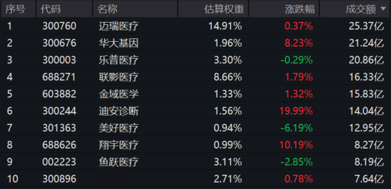 医疗器械ETF基金(159797)标的指数权重股多数飘红:迪安诊断20CM涨停,翔宇医疗涨超10%,华大基因涨超8%,联影医疗涨超2%,金域医学涨超1%,迈瑞医疗微涨。