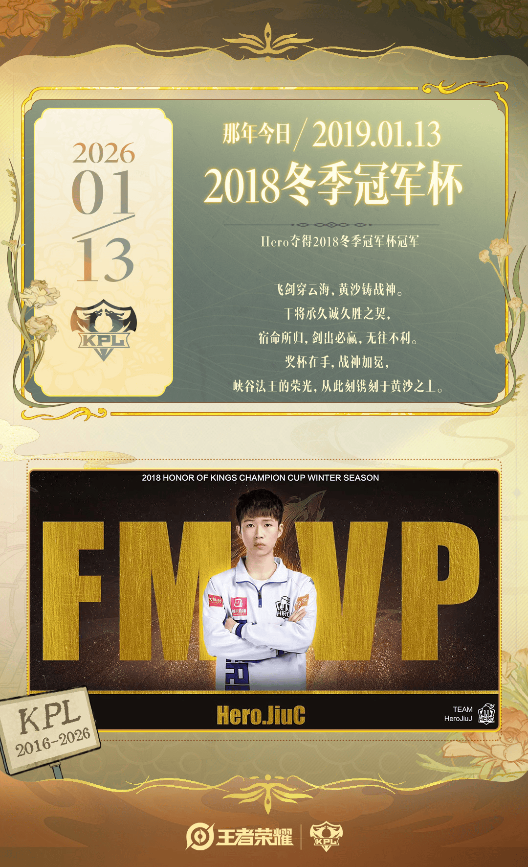 虎扑01月13日讯七年前的今天:Hero捧起首座冰凤凰杯,久诚加冕冬冠FMVP