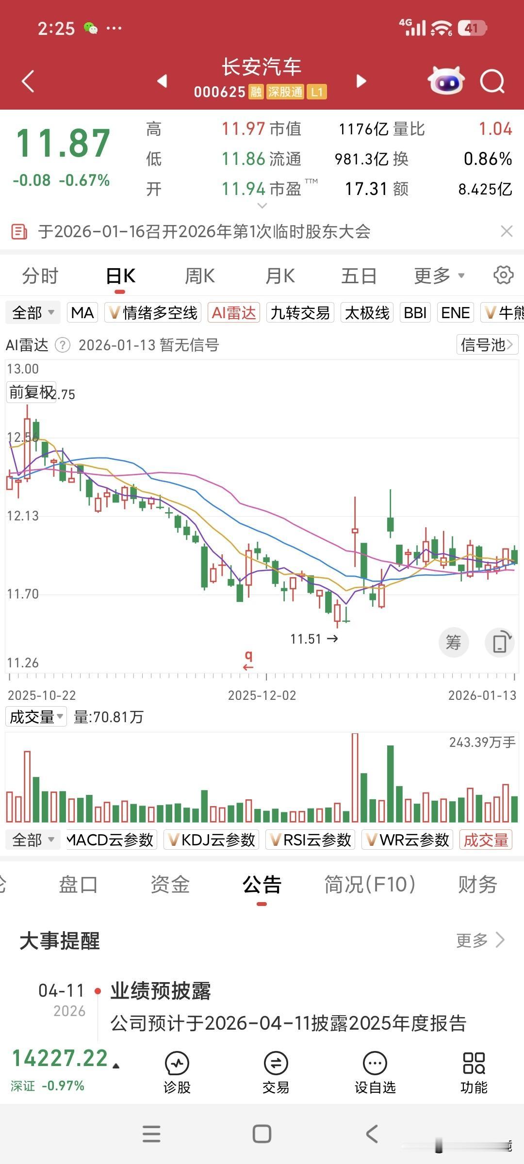 今天实在是按捺不住,把长安汽车割肉清仓了。你想着从它这儿赚点钱,它却让你每日清汤