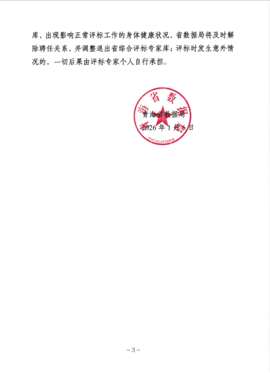 青海省数据局发布4名评标专家出现身体不适情况的通报:不再聘任,调整出库