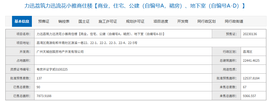 力迅琶洲湾和力迅荔筑类似。2022年12月,力迅地产入住方所广州琶洲西区项目地块,广州住建局数据显示,项目于2025年2月拿证入市,将近一年时间仅卖出12套,去化率约10.7%。