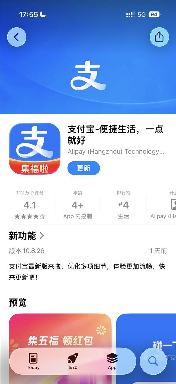 苹果AppStore页面显示,今年的集五福活动依然可获得红包奖励,且奖励可以翻多倍。