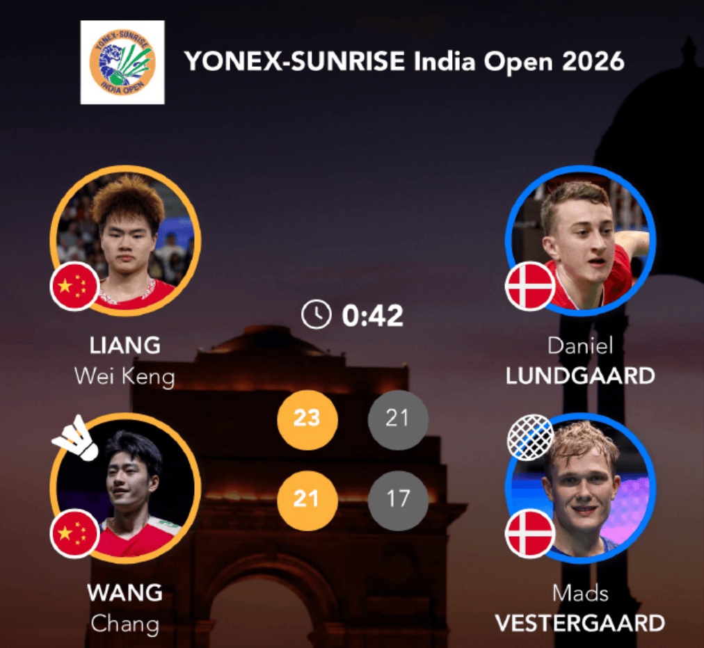虎扑01月13日讯2026年印度羽毛球公开赛迎来了首个比赛日的角逐。在1号场地进行的一场男双比赛中,世界排名第4的中国组合梁伟铿/王昶以2-0战胜世界排名第28的丹麦组合伦加德/麦斯,挺进下一轮。
