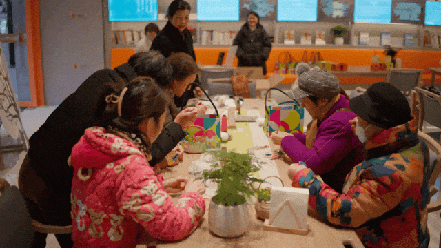 考虑到季节变化,银发马塍Mall还专门打造了舞蹈教室与社群活动空间,为不同爱好的居民提供专属场地。春节临近,编中国结、写福字等活动在这里热闹开展,专业老师现场指导,完成手工的阿姨们笑容满面,上百张福字、对联尚未写完,就被居民排队预订。