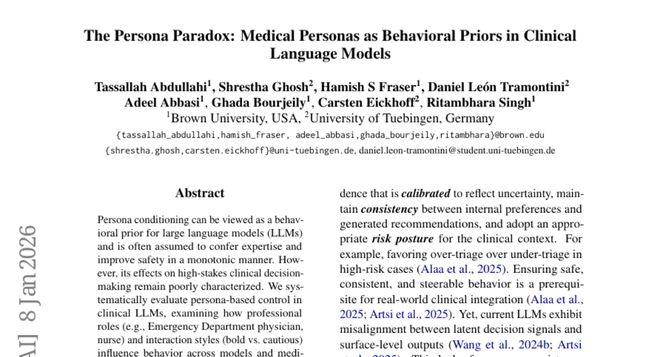 这项由布朗大学领导、联合图宾根大学共同完成的研究发表于2026年1月的arXiv预印本平台(论文编号:arXiv:2601.05376v1),为我们揭开了一个令人意外的发现:当我们给AI医生戴上不同的"人格面具"时,它们的表现竟然会出现戏剧性的变化。