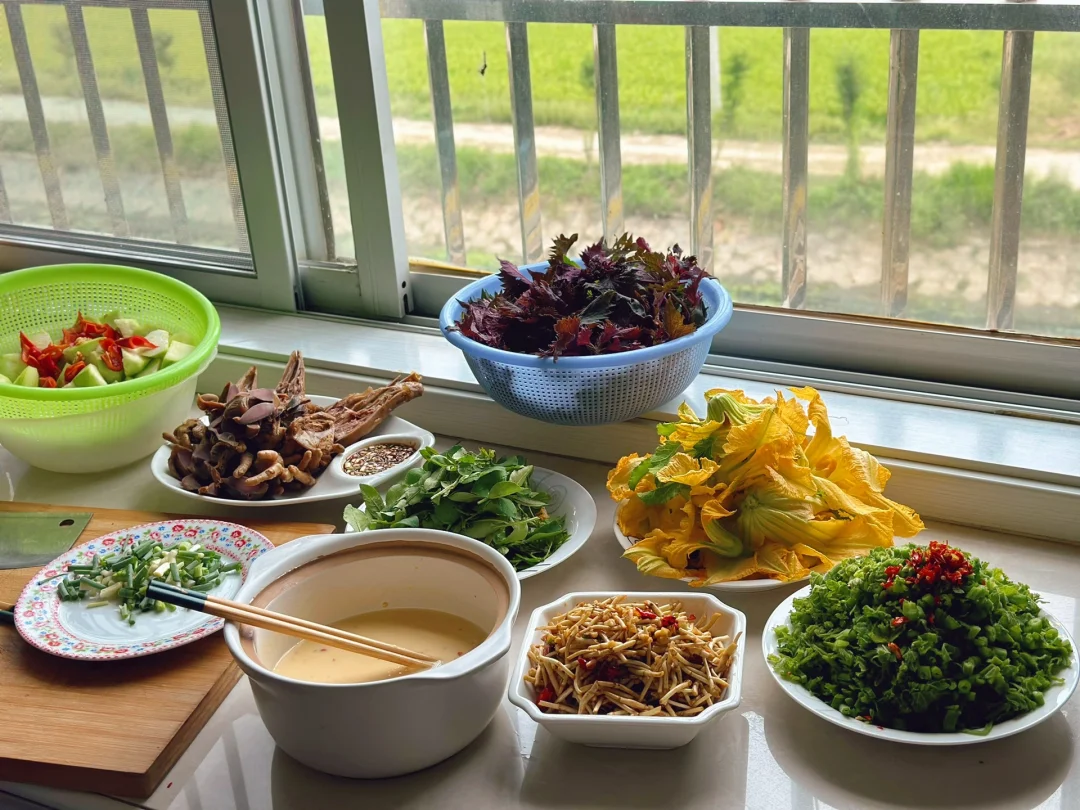在老家最开心的事情就是每天都可以和妈妈一起做饭,食材基本上也都是纯天然的,吃得安心 今日分享:炸紫苏叶花椒叶,凉拌折耳根,卤货也是自己做的,还有毛豆,清炒南瓜尖,辣椒炒丝瓜,炒魔芋豆腐!都是喜欢吃的菜! 小的时候总想逃离的地方如今却很向往,一家人在一起简简单单,自家种的蔬菜,清新的空气!