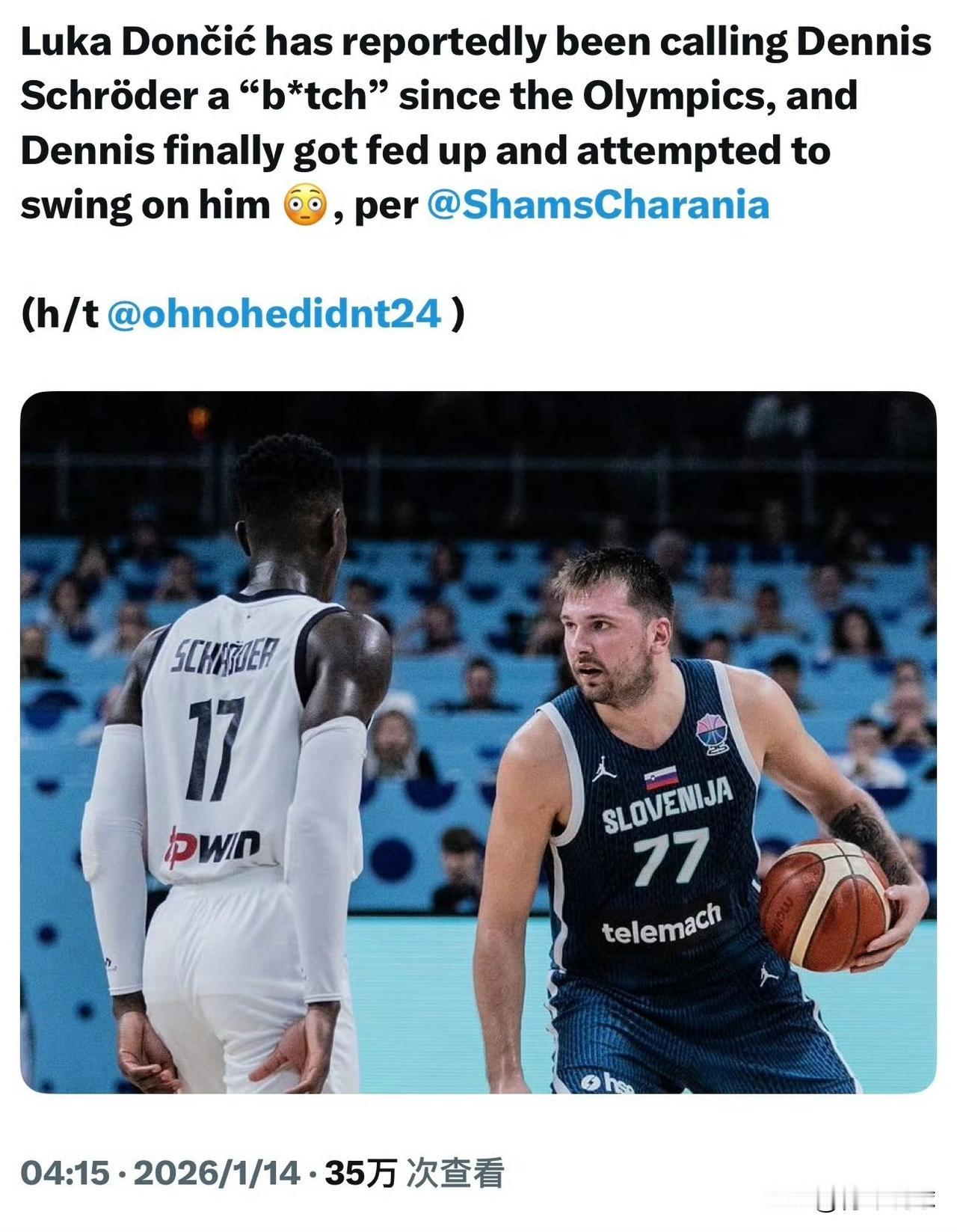 挨打不冤!东契奇嘴太碎了啊! 据权威记者Shams在一档节目中透露,东契奇与施罗德的恩怨由来已久。自从巴黎奥运会以来,东契奇就一直用侮辱性词汇来称呼施罗德,这让后者最终忍无可忍,决定动手打他。 看来大家都误会施罗德了,他才是那个受害者,一直忍受着东契奇的谩骂,这换作其他人或许早就动手了,后者挨打真的不冤。东契奇的嘴真的太碎了,一直以为他是一个谦逊有礼的好榜样,万万没想到他会是如此的嘴不饶人,难怪经常与其他球员发生冲突。作为联盟的超级巨星,应该时刻注意自己的言行举止。相信经过了这次事件之后,东契奇会有所收敛,不敢轻易乱说话了。