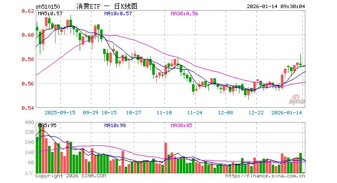1月14日,消费ETF(510150)开盘跌0.17%,报0.574元。消费ETF(510150)重仓股方面,恒瑞医药开盘涨0.05%,药明康德跌0.05%,贵州茅台涨0.00%,伊利股份跌0.07%,赛力斯跌0.40%,福耀玻璃涨0.00%,海尔智家涨0.27%,山西汾酒跌0.08%,上汽集团涨0.00%,联影医疗涨0.02%。