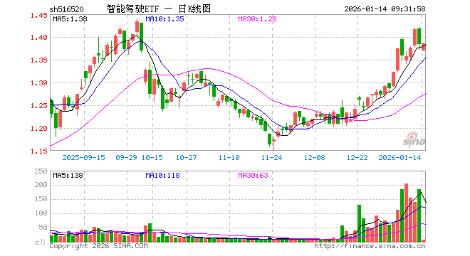 1月14日,智能驾驶ETF(516520)开盘跌1.01%,报1.370元。智能驾驶ETF(516520)重仓股方面,立讯精密开盘跌0.70%,芯原股份涨0.63%,拓普集团跌0.38%,豪威集团跌0.14%,科大讯飞涨0.61%,德赛西威跌1.59%,闻泰科技跌0.73%,欧菲光跌0.36%,均胜电子跌0.53%,思特威涨0.00%。