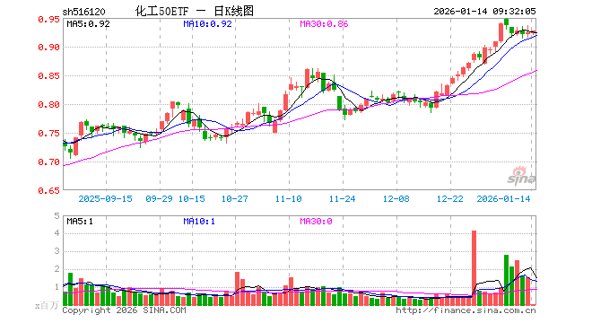 1月14日,化工50ETF(516120)开盘跌0.22%,报0.922元。化工50ETF(516120)重仓股方面,万华化学开盘跌0.11%,盐湖股份跌0.15%,巨化股份跌0.47%,天赐材料跌0.78%,藏格矿业跌0.44%,金发科技跌0.40%,华鲁恒升跌0.37%,宝丰能源涨1.08%,恒力石化跌2.22%,云天化涨0.00%。