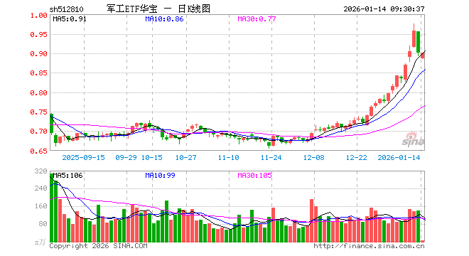 1月14日,军工ETF华宝(512810)开盘跌1.56%,报0.886元。军工ETF华宝(512810)重仓股方面,中国船舶开盘跌0.53%,中航沈飞跌0.32%,光启技术跌0.02%,航发动力跌0.52%,中航光电跌0.55%,中航西飞跌0.45%,中国长城涨0.56%,菲利华涨0.01%,睿创微纳涨0.62%,航天电子跌1.73%。