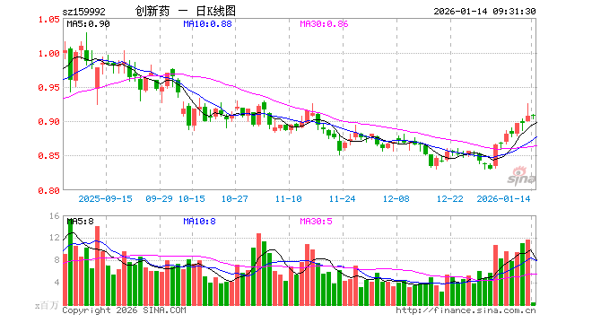 1月14日,创新药ETF(159992)开盘涨0.11%,报0.909元。创新药ETF(159992)重仓股方面,药明康德开盘跌0.05%,恒瑞医药涨0.05%,长春高新跌0.77%,科伦药业跌0.06%,复星医药涨0.60%,华东医药涨0.00%,百济神州涨1.71%,信立泰涨0.46%,康龙化成跌0.09%,百利天恒跌0.58%。