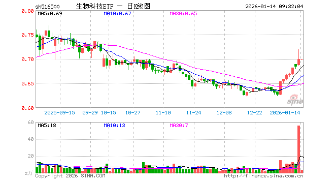 1月14日,生物科技ETF(516500)开盘跌0.14%,报0.699元。生物科技ETF(516500)重仓股方面,药明康德开盘跌0.05%,恒瑞医药涨0.05%,迈瑞医疗跌0.11%,长春高新跌0.77%,复星医药涨0.60%,上海莱士涨0.00%,百济神州涨1.71%,康龙化成跌0.09%,泰格医药跌1.75%,甘李药业跌0.13%。