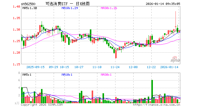 1月14日,可选消费ETF(562580)开盘涨0.08%,报1.287元。可选消费ETF(562580)重仓股方面,美的集团开盘涨0.00%,比亚迪跌0.39%,格力电器跌0.05%,赛力斯跌0.40%,福耀玻璃涨0.00%,三花智控跌1.47%,海尔智家涨0.27%,上汽集团涨0.00%,拓普集团跌0.38%,中国中免涨0.10%。