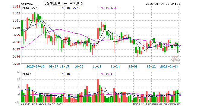 1月14日,消费50ETF国联安(159670)开盘跌0.41%,报0.967元。消费50ETF国联安(159670)重仓股方面,美的集团开盘涨0.00%,贵州茅台涨0.00%,五粮液跌0.11%,格力电器跌0.05%,伊利股份跌0.07%,牧原股份涨0.02%,三花智控跌1.47%,温氏股份跌0.06%,海尔智家涨0.27%,山西汾酒跌0.08%。