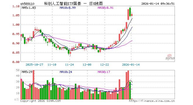 科创人工智能ETF国泰(589110)业绩比较基准为上证科创板人工智能指数收益率,管理人为国泰基金管理有限公司,基金经理为麻绎文,成立(2025-09-26)以来回报为4.60%,近一个月回报为17.43%。