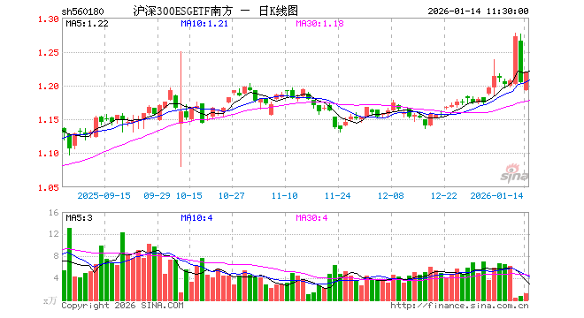 1月14日,截止午间收盘,沪深300ESGETF南方(560180)涨1.33%,报1.220元,成交额137.72万元。沪深300ESGETF南方(560180)重仓股方面,宁德时代截止午盘跌0.22%,贵州茅台涨0.43%,招商银行跌0.15%,中际旭创跌1.04%,长江电力涨0.26%,美的集团涨1.72%,比亚迪涨0.22%,兴业银行涨0.57%,工商银行跌0.77%,恒瑞医药涨0.76%。