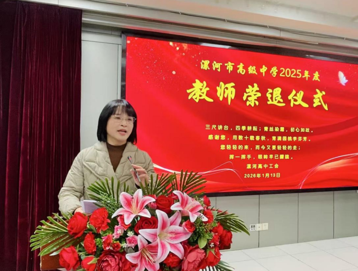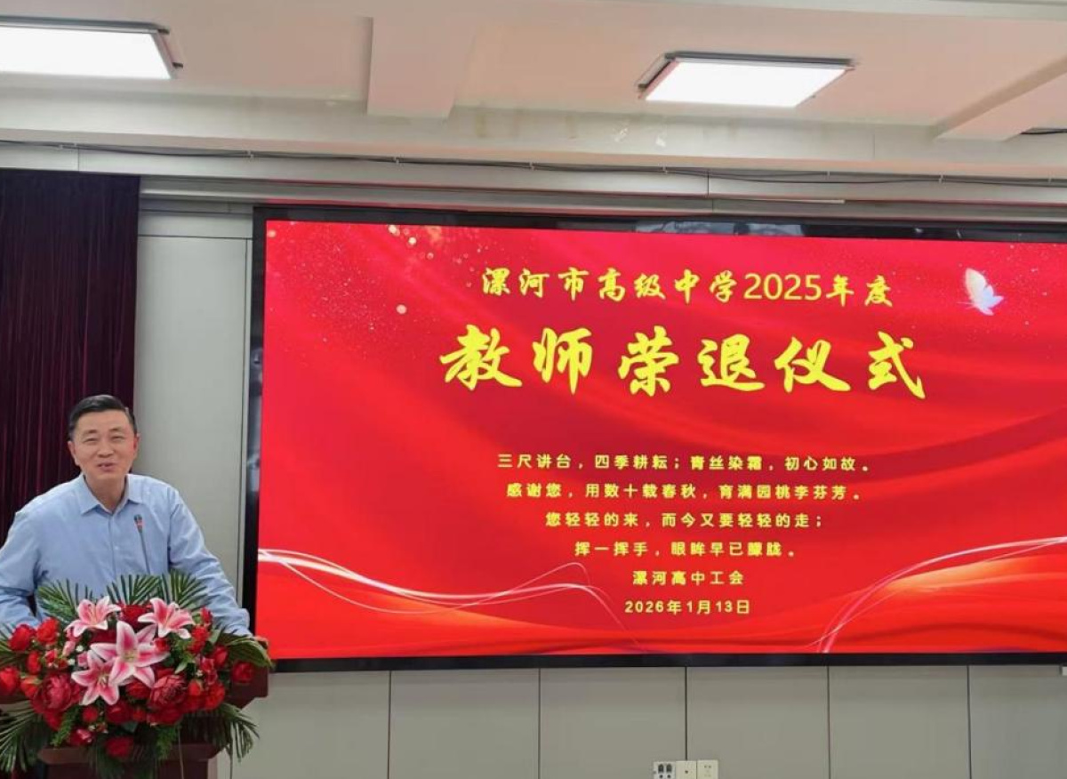 1月13日,漯河高中举行2025年度教师荣退仪式,以温情而庄重的方式,为董艳丽、申凌云、陈吉龙等荣退教师送上真挚感谢与美好祝福。仪式由学校党委副书记陈爱红主持,学校领导班子成员、中层干部、各处室教师代表齐聚一堂,现场暖意融融,情谊深切。
