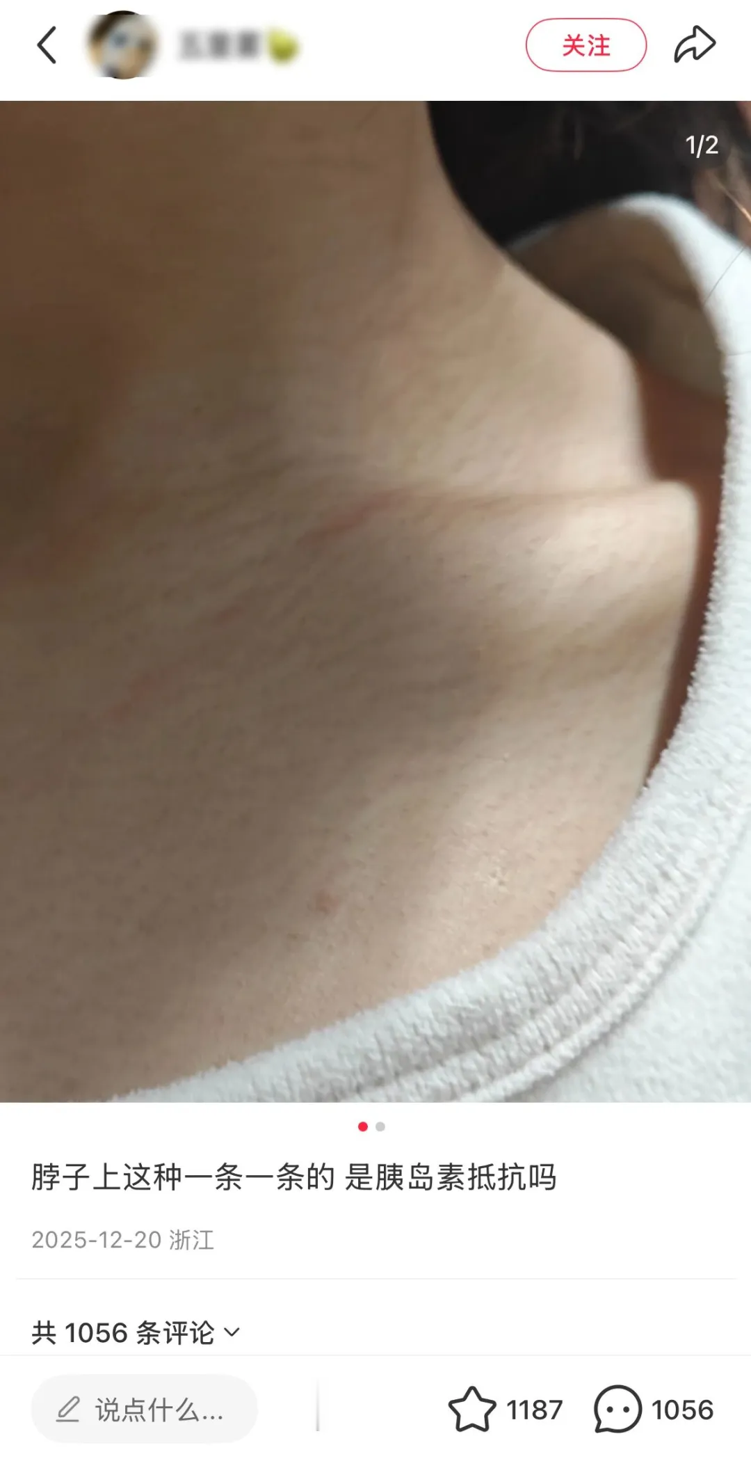 最近有网友发帖求助“脖子上这种一条一条的是胰岛素抵抗吗”