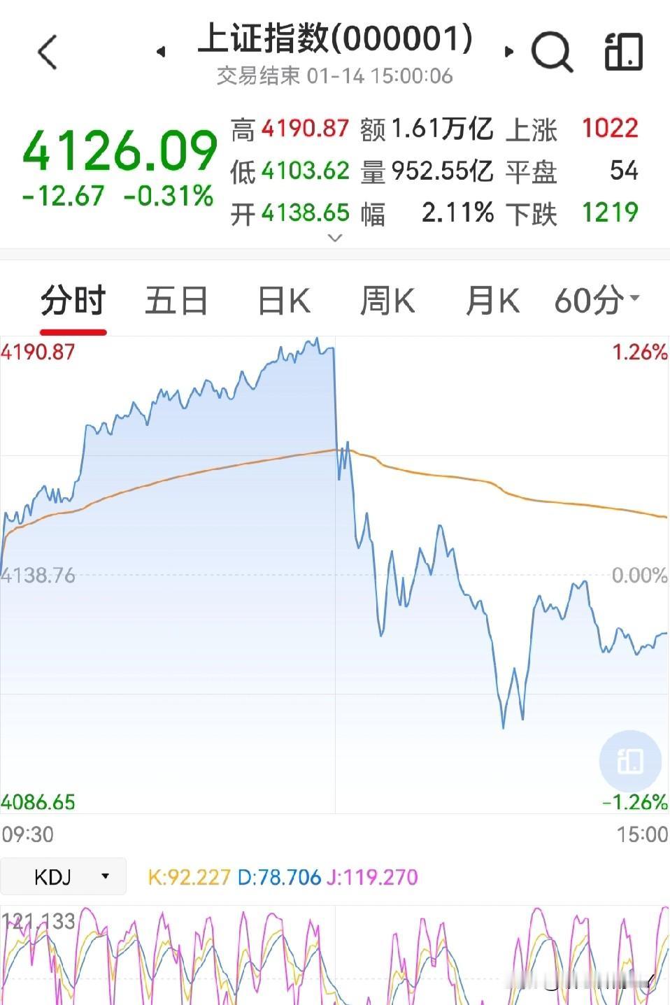 今日A股收盘:上证指数午后经历两波小跳水行情,走势转弱,从4190.87的高点回