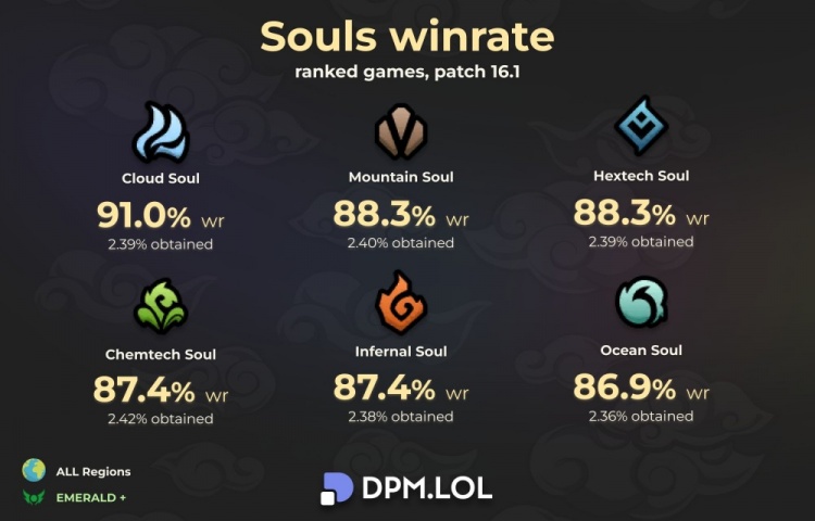 英雄联盟当前版本龙魂胜率:全部超过85% 风龙魂高达91%!
