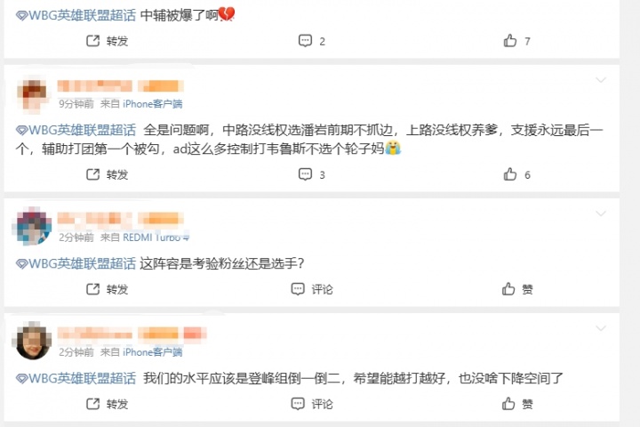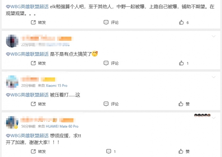 WBG超话怒斥首局落败:elk勉强算个人吧 至于其他人 中野一起被爆 上路自己被爆