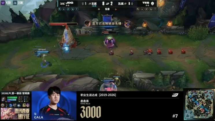 里程碑:GALA达成LPL 3000击杀成就,位列LPL第七名