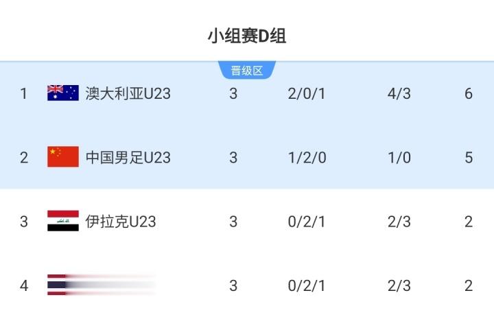 U23亚洲杯第二轮比赛全部结束,最后一场比赛泰国队1:1战平伊拉克队,让D组晋级