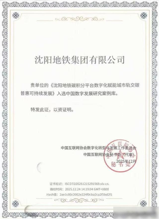 从创新尝试到行业获奖,再到入选国家级案例库,沈阳地铁碳积分平台的成长轨迹,生动诠释了国有企业数字化转型的实践路径。它不仅为市民带来切身的绿色低碳获得感,更为全国公共交通的数字化、绿色化转型提供了行之有效的“沈阳方案”。
