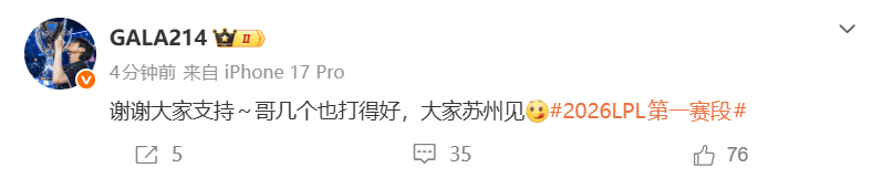 GALA赛后更新动态:哥几个也打得好,大家苏州见