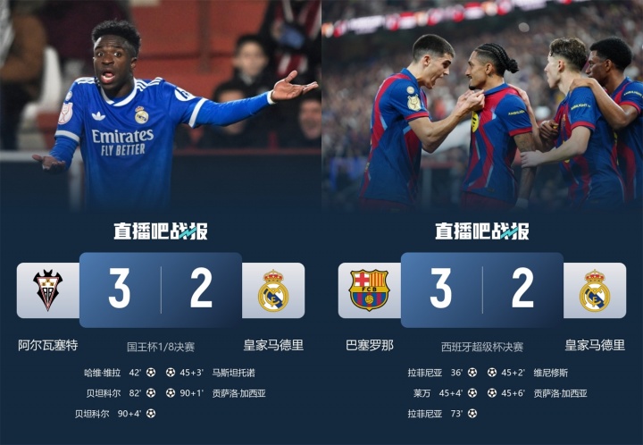 三天前,皇马刚刚输掉西超杯,比分同样是2-3。三天之内,一支西甲豪强,一支西乙弱旅,对皇马打出了同样的比分。
