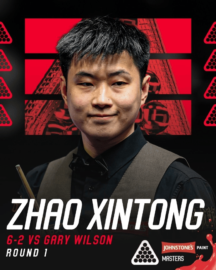 虎扑01月15日讯今早,斯诺克大师赛结束首轮争夺。赵心童、吴宜泽、肖国栋三位中国球员晋级八强。