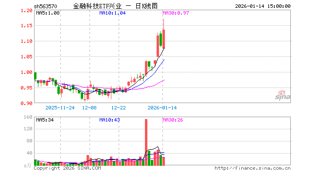 1月14日,金融科技ETF兴业(563570)涨4.70%,成交额2969.99万元。当日份额减少1200.00万份,最新份额为1.19亿份,近20个交易日份额减少2.65亿份。最新资产净值计算值为1.35亿元。