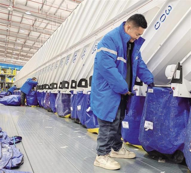 在中通快递呼和浩特转运中心记者看到,进港操作区内自动分拣线快速运转,分拣人员在各自岗位娴熟作业。中通快递集团内蒙古管理中心总经理助理任蕰凯告诉记者:“我们将绿色环保理念深度融入运营各个环节,实现包装减量化,从源头削减环境负担。运输中转循环化,循环中转袋(RFID袋)全面应用。在个人寄件业务中提供全生物降解快递袋选项,并在末端配送环节大规模投入新能源物流车,减少碳排放。”