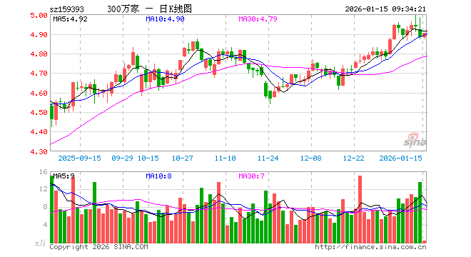 1月15日,沪深300指数ETF(159393)开盘涨0.00%,报4.880元。沪深300指数ETF(159393)重仓股方面,宁德时代开盘跌0.35%,贵州茅台跌0.14%,中国平安跌0.15%,招商银行涨0.10%,紫金矿业跌0.62%,新易盛跌0.99%,中际旭创跌1.65%,美的集团涨0.40%,东方财富跌2.06%,长江电力涨0.63%。