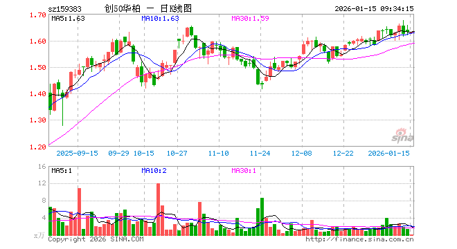 1月15日,创业板50ETF华泰柏瑞(159383)开盘跌0.31%,报1.627元。创业板50ETF华泰柏瑞(159383)重仓股方面,宁德时代开盘跌0.35%,中际旭创跌1.65%,东方财富跌2.06%,新易盛跌0.99%,阳光电源跌1.80%,胜宏科技跌1.39%,汇川技术跌0.08%,迈瑞医疗跌0.49%,亿纬锂能跌0.39%,同花顺跌2.14%。