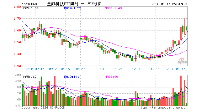 1月15日,金融科技ETF博时(516860)开盘跌0.92%,报1.618元。金融科技ETF博时(516860)重仓股方面,同花顺开盘跌2.14%,东方财富跌2.06%,指南针跌0.70%,恒生电子跌2.36%,润和软件涨1.69%,东华软件跌0.09%,银之杰跌1.57%,新大陆涨1.48%,广电运通跌1.13%,大智慧跌1.95%。