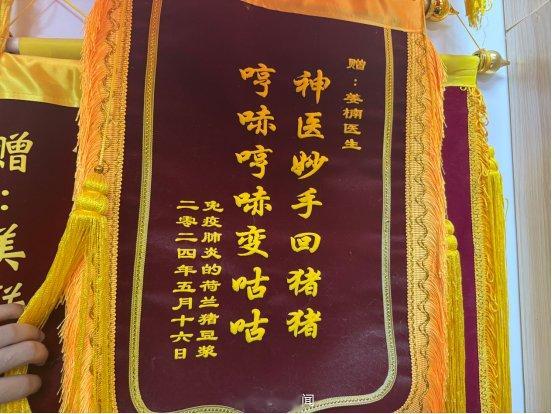 在医院诊疗区内,比“病号”更引人注目的,是整面墙上叠挂得厚厚的锦旗。“龟科圣手,救我龟命”“妙手仁医,鸡界华佗”“盖世神医,救我猪命”……这些带着俏皮话的锦旗,可不只是装饰。每一面背后,都藏着一个温暖鲜活的故事。