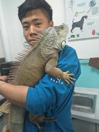 姜楠抱着一只绿鬣蜥
